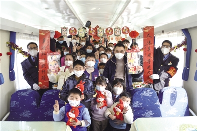 T221次列车虽是长途列车,但春运阶段开往广州方向的车次仍是运载省内短途返乡旅客的主力。当天下午在T221次列车布满新春元素的餐车上,旅客们吃着热食,参与着由列车工作人员组织的小活动,车厢内不时传来欢声笑语。