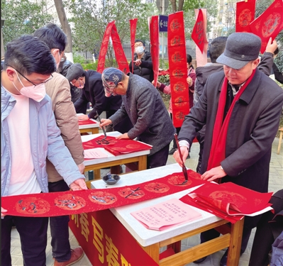 为了让年味更加浓厚,皖水公寓还邀请5位高新区书法协会专家来到小区,为住户写春联、送祝福。一幅幅墨香四溢的春联蕴含着传统文化的魅力,一个个字体各异的“福”字饱含着对住户的新春祝福,也寄托着住户们在新一年“兔年大吉”的美好心愿。
