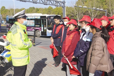 1月28日上午,合肥高新交警大队联合合肥市第八中学的学生志愿者开展交通安全志愿服务活动。他们先后向学生志愿者介绍了大队的整体队伍情况及交警日常工作内容,并带领学生们参观了大队执法办案场所、事故处理窗口。随后,学生志愿者在望江西路与枫林路路口开展了文明交通劝导志愿服务活动。