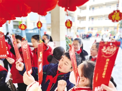 2月5日,合肥市蚌埠路第四小学开展“潮玩元宵喜乐会”主题活动,迎接新学期到来。学校通过赏花灯、猜字谜、吃元宵、砸金蛋等丰富多彩的活动,让同学们切身感受祖国传统文化的魅力,激发学习热情,迎接2023年新学期到来。图为活动现场。吴兰保 梁 斌