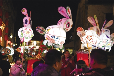这是宏村举行的迎元宵闹花灯活动(2月4日摄)。 新春里,位于安徽省黄山市黟县的世界遗产地宏村迎来众多游客,人们逛祠堂、赏民俗、品咖啡,旅游经济、夜间经济、小店经济在这座皖南古村相互融合,激发了消费活力。