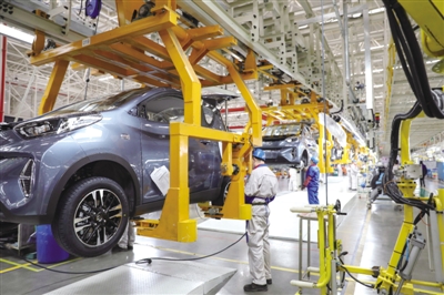 2月3日,工人在奇瑞汽车股份有限公司新能源二期工厂总装车间作业。