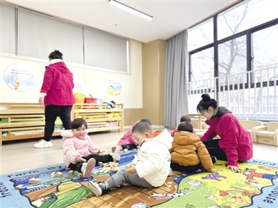 星报讯 日前,在位于合肥市阜阳北路1号的庐阳区创和托育机构里,咿呀学语的孩子们在老师的陪伴下做着游戏,室内游戏区、运动区、阅读区等多功能分区一应俱全,还有专为幼儿设置的防夹护门、卡通主题生活台、小沙发……各种细节十分暖心,让幼儿“有处可托”、家长“放心托付”。
