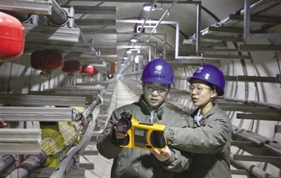 2月10日,在位于合肥市巢湖湖底42米深处、全长780米的湖光路电缆隧道内,合肥供电公司电缆运检中心员工对运行中的高压电缆进行特巡。湖光路电缆隧道是全省距离最长、地下最深的专业电缆隧道。