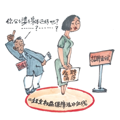 “你公公婆婆身体还好吧?”“你家那边的幼儿园学费贵吗?”“我们公司会发儿童节福利,你需要几份呢?”……这些问题不是朋友间的寒暄,而是今年30岁的北京求职者张梅在过去半年的面试中常常被问到的问题。(2月14日《法治日报》)