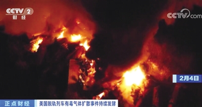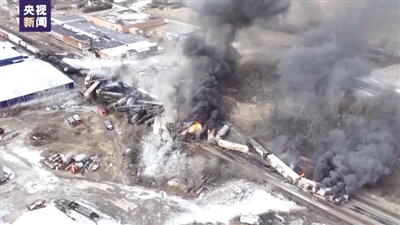 综合中新社 央视新闻 当地时间2月3日,一列运载危险化学品的火车在美国俄亥俄州脱轨,引发大火。由于脱轨车厢载有氯乙烯等危险化学品,大量有毒气体被释放。