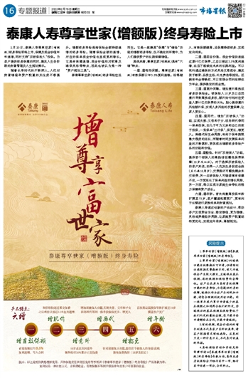 泰康人寿尊享世家(增额版)终身寿险上市