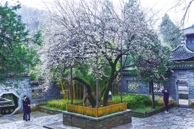 近日,滁州琅琊山镇山之宝“欧梅”如约绽放。欧阳修在滁州写下了千古名篇《醉翁亭记》并在醉翁亭畔亲手种植了这棵梅树,后人遂把这株古梅称之为“欧梅”。 “欧梅” 为中国四大梅寿星之一,虽已高龄,却年年绽放,香味越千年,迎春吐芳华,吸引了众多游客慕名前来,一睹芳容。