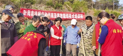 近日,绩溪县林业局组织林业科技特派员服务团到临溪镇富林山开展青钱柳栽培技术培训活动,该基地是绩溪县2022年中央财政林业科技——叶用青钱柳良种培育及高效栽培技术推广示范项目建设基地。林业科技特派团成员、项目实施单位负责人、施工单位作业人员及当地林农等30余人参加培训。 培训现场,科技特派员、项目主持人丁满萍针对青钱柳栽植在苗木选择修剪、基肥穴施方法、栽植要领及注意事项进行了现场指导,并对叶用青钱柳栽培后期在幼林抚育、树体管理、病虫害绿色防控等技术措施作了详细讲解。随后,科技特派员们对项目施工作业人员一对一进行了现场栽植操作示范。