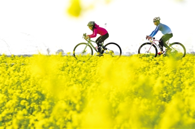 随着天气回暖,江西省樟树市永泰镇官湖村的油菜花竞相绽放,金黄色花海染尽乡野,吸引了众多游人和学生等前来观赏、写生,感受春日之美。图为2月21日,骑行爱好者在江西省樟树市永泰镇官湖村油菜花海中骑行、赏花。 新华社发 周亮/摄