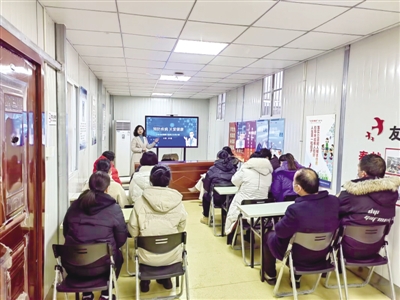 2月22日,合肥市瑶海区铜陵路街道携手新华医院开展“呵护健康”知识讲座活动。活动由街道工会、团工委、科协、关工委、老年学校联动合浦北村社区共同开展。专家为参加活动的老人科普了预防高血压等健康知识,提醒老人要定期进行身体健康检查。图为活动现场。
