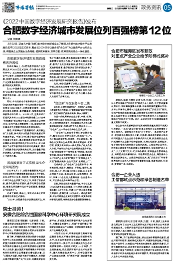 合肥数字经济城市发展位列百强榜第12位