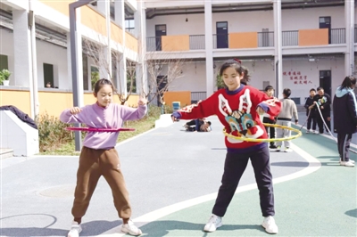 玩转魔方、跳皮筋、阅读,带给孩子们快乐,课间十分钟还是吟诗大会,吟诵出了最美的春天。“呼啦圈”绕腰间,蹦跳方格子,棋手博弈,跳大绳合作,小组拔河,炫酷“龙拳操”……这些融趣味性、艺术性、学习性于一体的课间活动深受孩子们的欢迎,班班有特色,生生齐参与,将课间变得丰富多彩。