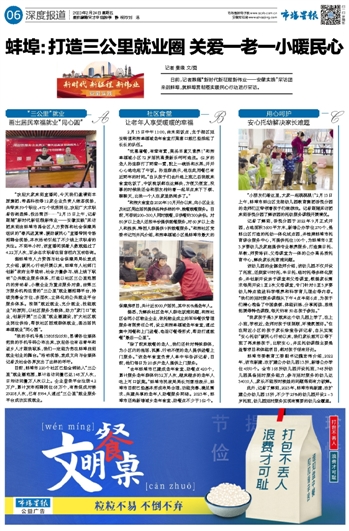 蚌埠:打造三公里就业圈 关爱一老一小暖民心