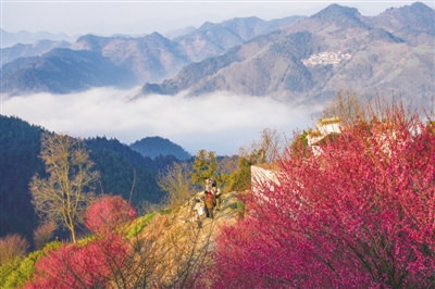 春暖花开,万物复苏,人们纷纷外出踏青赏花,享受春光。2月26日,游人在安徽省歙县霞坑镇石潭村观赏梅花、云海美景。 新华社发 水从泽/摄