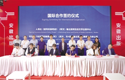 活动最后,时代出版旗下安徽人民出版社、安徽科学技术出版社、安徽教育出版社、安徽文艺出版社、安徽少年儿童出版社、黄山书社、安徽美术出版社、北京时代华文书局、时代新媒体出版社等9家出版社,分别与战略合作伙伴阿拉伯文学出版中心、时代未来有限责任公司、亚洲智库出版公司、韩国民俗苑出版社、乌克兰海勒维提卡出版社、皇家柯林斯出版集团、列宁格勒出版集团、法国比利弗音乐公司等进行签约。