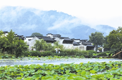 当日,呈坎古村烟雨朦胧,远山云雾缥缈,永兴湖荷叶承珠,游人徜徉其间,沉醉于这如诗如画的雨境,流连忘返。
