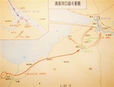 1938年春,国共合作建立抗日民族统一战线后,在鄂豫皖边区坚持三年游击战争的红军游击队,被改编为新四军第四支队,东出大别山,开赴舒城、合肥庐江、巢县等皖中抗日战场。第四支队抵达皖中敌区后,迅速实施战略展开,1938年5月12日,新四军第四支队九团一部在巢湖打响了新四军抗日第一仗并获全胜,史称“蒋家河口战斗”。如今在蒋家河口矗立着一块石牌,上刻叶飞将军亲笔题写的“蒋家河口战斗遗址”8个大字,记载了当年新四军东进抗日首战告捷的历史功绩。
