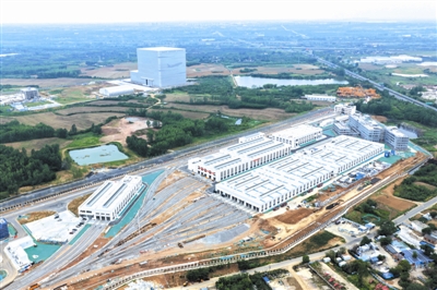 6月16日,在合肥市新桥机场S1线岗集车辆段项目现场,工人们正在施工。作为合肥重点交通工程,合肥新桥机场S1线岗集车辆段项目总建筑面积约7.5万平方米,包含运用库、检修库等17个单体,项目建成后将承担合肥新桥机场S1线列车的停车检修及调试的相关工作。