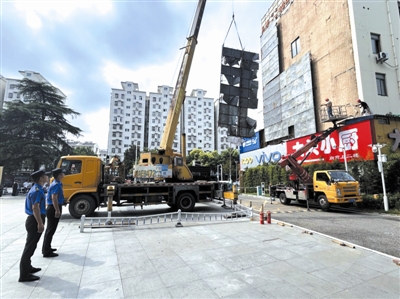 星报讯 近日,合肥市瑶海区和平路街道城管中队根据居民提供的线索,对和平路一栋综合商业楼侧面存在安全隐患的大型户外广告牌实施拆除。该广告牌高约20米、宽约10米,总面积约200平方米,因设置时间较长、支架锈蚀严重,经风雨侵蚀,存在脱落风险,周边市民普遍表示担忧。