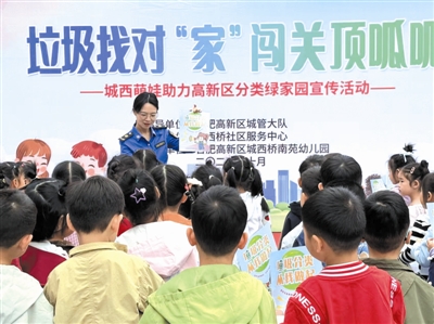 10月11日,合肥高新区城管大队、城西桥中心走进城西桥南苑幼儿园,举办了一场别开生面的“垃圾找对‘家’ 闯关顶呱呱”生活垃圾分类主题活动,将环保知识的种子播撒进孩子们的心田。