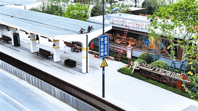 如今踏入这座口袋公园,踏上复古色系的 “记忆月台”,脚下两条嵌入地面的钢轨格外醒目,上面清晰镌刻着老火车站筹建到停用的关键节点;不远处,经典复刻的“大象滑梯”上,小朋友们正在攀爬嬉戏,以老式火车车厢为原型打造的文化展厅前,巨幅背景墙精准还原了百货大楼、老凤祥等老合肥地标,在这里,历史是可触、可感、可回忆的生活场景。