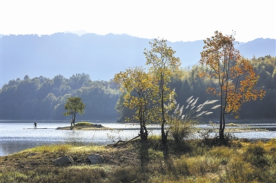 2025年10月23日,在安徽省黄山市黟县宏村镇拍摄的奇墅湖晨雾美景。当日是霜降节气,奇墅湖晨雾蒸腾,金色的霞光洒满整个湖面,流光闪烁,熠熠生辉,宛如仙境。
