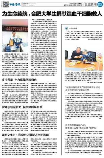 为生命续航 ,合肥大学生捐献造血干细胞救人