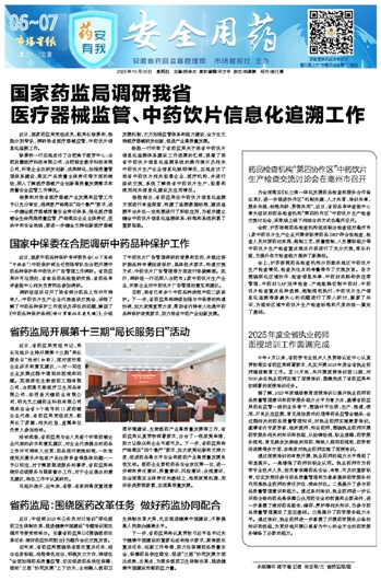 国家药监局调研我省 医疗器械监管、中药饮片信息化追溯工作