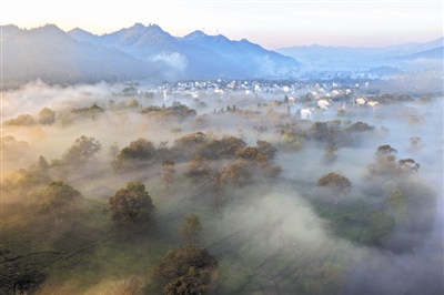 10月29日,安徽省黄山市休宁县商山镇溪洲村秋色缤纷,新安江上晨雾如纱,如梦似幻,在鳞次栉比的徽派村落间轻盈流淌,宛若一幅静谧空灵的水墨徽州画卷。