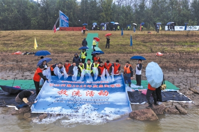 11月6日,以“携手开展增殖放流,共护江河生物资源 ”为主题的引江济淮2025年度增殖放流活动在桐城市鲟鱼镇杨棚渡口正式启动,安徽省引江济淮集团有限公司携手安徽省发改委、生态环境厅、农业农村厅,铜陵市、安庆市及相关县区政府代表等15家特邀单位,共同将80万尾鱼苗投放长江,为长江水域生态修复与江豚保护注入新活力。