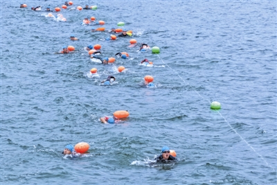 当日,2025黄山国际铁人三项赛在安徽省黄山市黄山区太平湖镇开赛,赛事设113公里全程、半程,11公里游跑两项及单项组别,吸引来自国内外800余名运动员参赛,在太平湖的青山碧水间激烈角逐。
