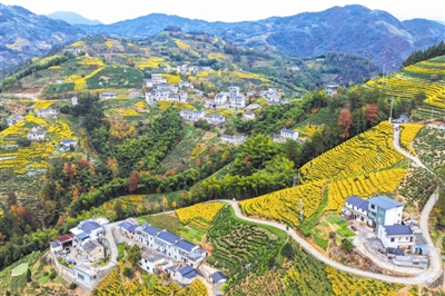 初冬时节,安徽省黄山市歙县溪头镇横心岭上山色斑斓,枝头挂满火红的柿子,与田间盛放的菊花相映生辉。游客穿行于村落古道间,尽享徽州山乡静谧而热烈的初冬韵味。