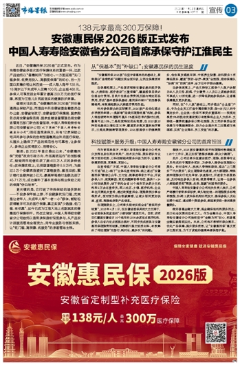 安徽惠民保2026版正式发布 中国人寿寿险安徽省分公司首席承保守护江淮民生