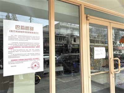 11月27日上午10时许,记者来到巴莉甜甜(宁国路店),发现该店并未营业,门店入口处贴有告示:“本店已售空,明日8:30营业。”“住在附近的人跟我说,这家店今天根本就没开门。”一位来到此处的顾客向记者说道。另一位顾客则向记者表示,近期已有不少门店相继停业。“不会所有的门店一下子全部关门,而是一家一家陆续停业。”该顾客向记者说道。
