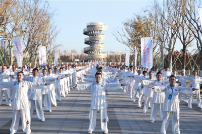 星报讯 11月29日,来自合肥市各县(市)区、开发区的近500名健身气功爱好者身着统一白色练功服,齐聚瑶海区青年创意田园,共同参与全国健身气功百城千村交流展示活动。