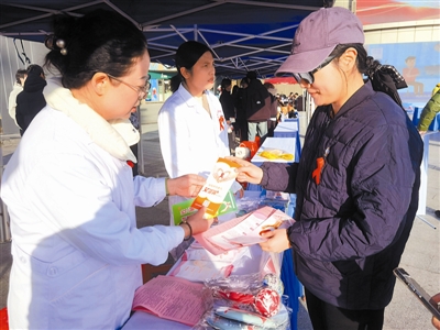 活动现场共同观看了艾滋病防治主题类的文艺表演,播放了艾滋病防治知识视频素材,普及防范感染艾滋病的知识和技能。活动现场设置了科普咨询区、公益检测区、义诊服务区、打卡区等多个功能区域,形成全方位的防艾宣传矩阵。在科普咨询区,疾控专家与医护人员通过宣传展板、折页手册等载体,用通俗易懂的语言详解艾滋病的传播途径、科学预防方法,重点破除“日常接触会感染”“感染者无法正常生活”等认知误区,并细致解读国家“四免一关怀”政策。