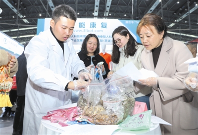安徽三联学院现代康养产业学院展区前人头攒动,身穿白大褂的学生们现场制作中药康养包,香气四溢的香囊吸引众多参观者驻足。“这款轻质下肢助力外骨骼机器人不仅能改善腿脚不便群体的步态,还能辅助体力较弱人群登山、爬楼梯,大幅提升出行体验。”安徽三联机器人科技有限公司工作人员向观众详细介绍核心产品。据三联机器人市场总监吴先春介绍,该展区整合了集团旗下康养全产业链资源,涵盖康养人才培养、专业服务供给、智能设备研发等多个板块,除中医推拿、舌诊问诊等互动体验项目外,还集中展示了机器人护理床、多功能助力移位机、智能传感器等科技助老产品及智慧化养老服务平台,让老人们近距离感受传统中医药与现代生物科技融合的独特魅力。