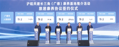 本届老博会现场,沪皖共建长三角(广德)康养基地举行隆重推介活动,并与合肥、蚌埠、阜阳、马鞍山、芜湖等地民政部门签署合作协议,进一步健全区域养老服务协作机制。“此次参展旨在借助老博会平台,全面提升长三角(广德)康养基地的品牌知名度和影响力。”广德市大运旅行社业务经理朱晓雅表示。此外,安徽省文化旅游投资控股集团有限公司与上海东犁退休俱乐部达成合作,共同推动上海老年人来皖旅居康养;沪苏皖浙养老协会还与部分省市养老协会集中签约,持续拓展跨区域养老合作网络,为老年群体打造高品质旅居康养新选择。