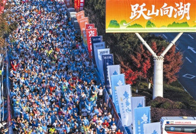 11月30日,以“会客天下 游跑黄山”为主题的2025黄山马拉松比赛在安徽省黄山市黄山区鸣枪开跑,来自德国、俄罗斯、加拿大等14个国家及国内23个省市的万名马拉松爱好者踏上“跃山向湖”的山水赛道,在色彩缤纷的美丽画卷中诠释运动激情。