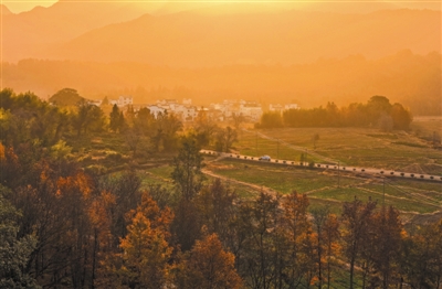连日来,安徽省黄山市黟县宏村镇大同村冬景缤纷,斑斓林木层层晕染,在晨光中更显浓郁色彩,与白墙黛瓦的徽派民居相映成趣,构成一幅浓墨重彩的冬日画卷。