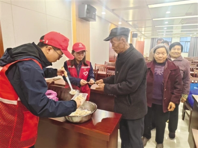 为了让老人们能够吃得尽兴,现场还特别设置了“爱心加餐区”。对于那些还想再吃几个饺子的老人,志愿者们热情地为他们提供二次添饺服务,确保每位老人都能吃饱吃好,感受到这份浓浓的关爱。