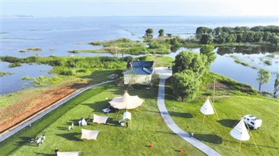 “生态+旅游”打造“网红打卡地”。横跨苏皖的石臼湖,凭借水天一色的“天空之镜”景观,成为摄友者和游客的心仪之地。经过生态修复的向阳水库,变身集花海、绿道、湿地公园于一体的特色风光带,适合露营野餐。百峰村依托EPCO一体化项目,建成集民宿、餐饮、研学、亲子乐园为一体的综合性基地,年客流量超万人,入选安徽省精品主题村。东湖村依托石臼湖景观,打造网红民宿和露营基地,让游客在“湖景房”内观日出、看候鸟。