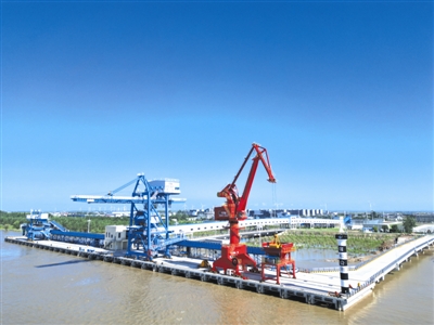 2025 年 1 月,这座现代化综合性码头正式投入运营,可承接各类散货、件杂货的装卸仓储业务。码头配备国内一流的专业设备:2000t/h 直线移动装船机、800t/h 桥式抓斗卸船机、20t/30m 门座式起重机各一台,配合科学的装卸工艺与专业作业团队,实现货物高效流转。后方陆域占地 202.5 亩,建成散货堆场 2.9 万平方米、件杂货堆场 1.1 万平方米,预留发展用地 2 万平方米,通过总长 1230 米的全封闭皮带机廊道与码头平台无缝衔接。完备的流动装卸机械、计量监测系统及环保设施,保障了年设计通过能力 265 万吨、实际可达 500 万吨的吞吐效能。