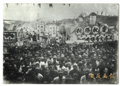 8月14日,日本政府正式照会苏、美、中、英四国政府,接受《波茨坦公告》。15 日,日本天皇以广播《终战诏书》的形式宣布无条件投降。9月2日,在东京湾的美国密苏里号巡洋舰上,日本天皇政府和帝国大本营代表在投降书上签字。至此,中国抗日战争胜利结束。消息传来,合肥、巢县、庐江地区人民奔走相告,一片欢腾,庆祝中国人民抗日战争和世界反法西斯战争的最后胜利。