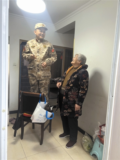 近日合肥市双岗街道一里井社区开展“民兵服务日”活动,活动聚焦独居老人、困难群众等特殊群体的实际需求,持续提供家电维修、生活照料、健康咨询等便民服务,让基干民兵的“橄榄绿”成为基层治理中最温暖的底色。图为一基干民兵为独居老人马奶奶家安装LED灯泡。