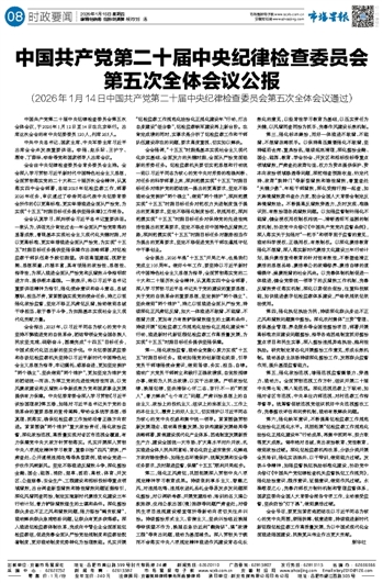 中国共产党第二十届中央纪律检查委员会 第五次全体会议公报