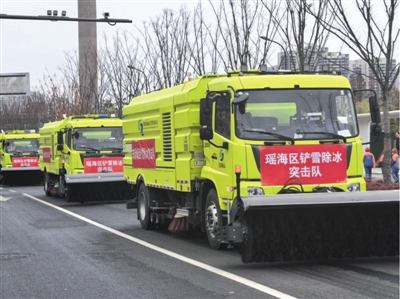 高新区城管执法大队完善应急指挥调度体系,优化应急队伍,检修保养设备,开展专项培训,足量储备环保型融雪剂,并动员沿街单位、商户落实“门前三包”参与清雪。新站高新区应急和城管局建立联动机制,与气象、交警部门及12345 热线密切沟通,组织应急演练提升实战能力,全面做好应急物资储备保障。