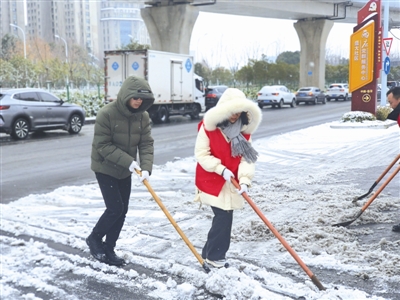 1月20日,合肥一片银装素裹,为保障辖区居民安全出行,合肥市包河区望湖街道盛大社区第一时间启动冬季应急除雪预案。清晨6时许,社区工作人员、党员志愿者、物业保洁团队率先集结,奔赴各重点区域开展除雪作业。寒风中,红色身影与皑皑白雪相映成景,构成一道温暖的风景线。
