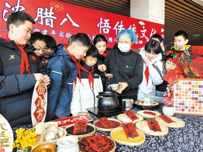 1月23日,合肥市建平实验小学南艳分校的孩子们在食堂阿姨的指导下,亲手熬制腊八粥,在劳动与分享中感受传统节日的温暖。